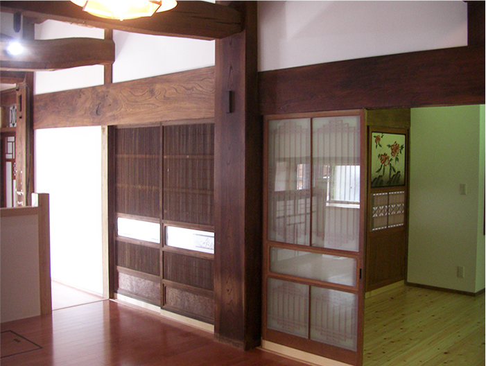 古民家のしっかりとした木組みを活かし、住みつないでいくことができる古民家再生を提案しています。